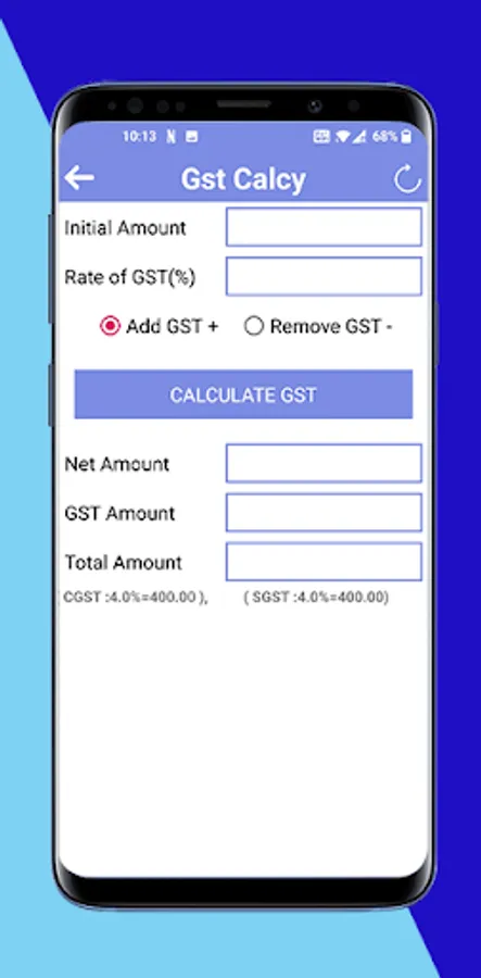 With this Gst Calculator you can calculate you Gst Tax with just single click and also manage history of your calculations.