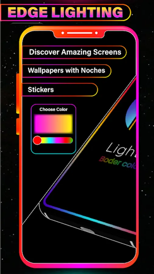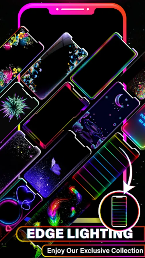Magical Edge Lighting LED Border light Live Wallpaper Magical Edge Lite also allows users to set an unique video edge live wallpaper with an animated effects. neon borderlight also provides edge light effects notification. borderlight has simple User Interface Design to understand and use the app. Edge borderlight is free to use and it has a large collection of all animated Edge lighting live wallpaper which all have different effects to make more fantastic your live wallpaper... Borderlight Live Wallpaper perfectly works with all mobile phones screens in both lock and unlock mode. When it illuminate on phone screen boarders, the LED light reflects on its edges of the phone. Turn your phone screen beautiful with Borderlight Live Wallpaper - LED color Edge.