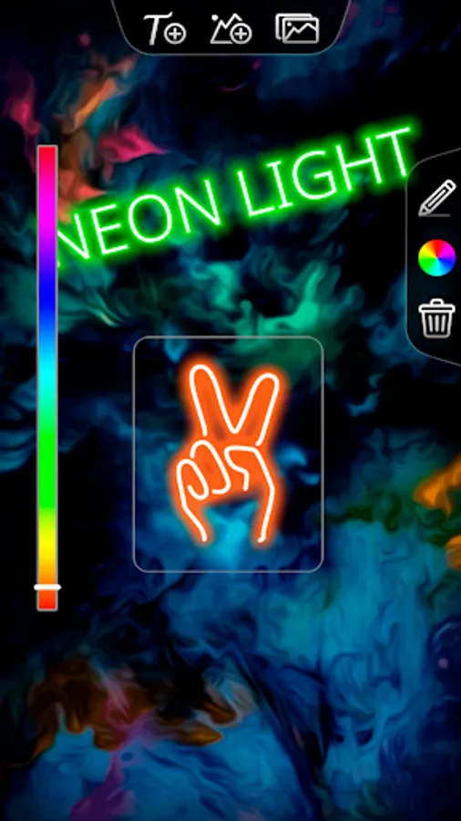 Choose from the predefined backgrounds offered by the app, or use any image or photo from your gallery as a background to complete your neon signs.