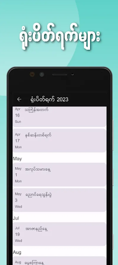 Holidays can be easily viewed.