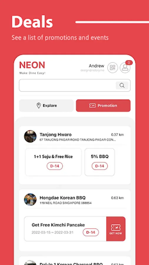 With Neon, you can discover 200 + restaurants, subscribe to restaurants you like and get exclusive coupons only available to you. Save more points by having all the foods you enjoy!