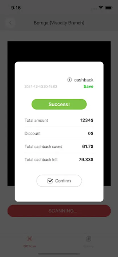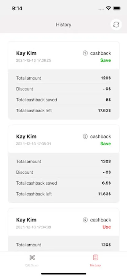 The purpose of using this app is to verify the authenticity of QR codes. We provide various services to our customers and the way it works is to issue QR codes. Suppose a user wants to save up cashback after having a nice meal at a restaurant. All he needs to do is to show QR code of his own then the staff will scan the QR with this app and the server will check the validity of the QR code. Not only this, we provide all history page where users can see all the transactions been made using this app.