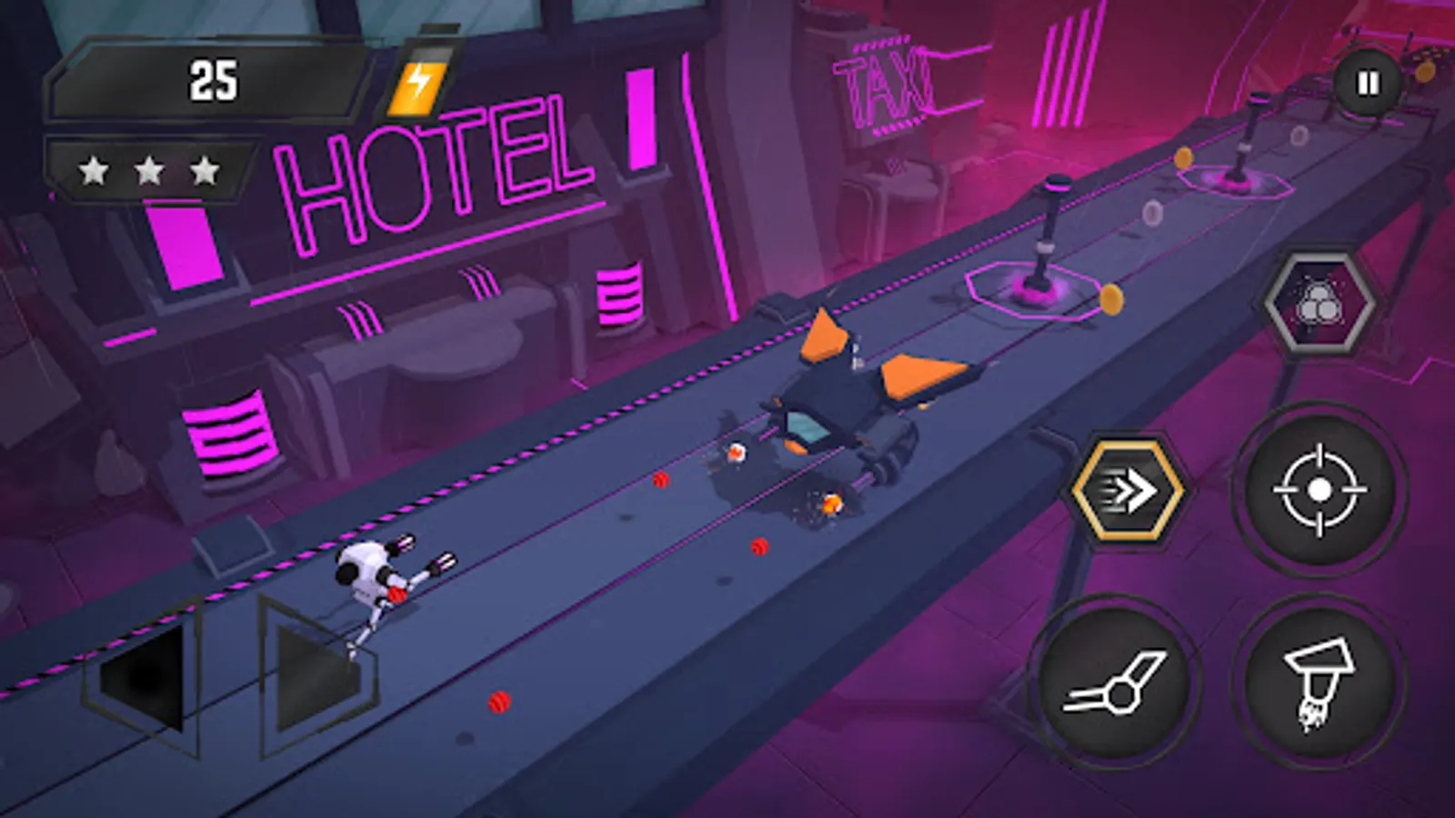 In this game mode you have to run as far as you can before your energy runs out. Crashbots features 5 different robots. Each robot has its own stats and a unique heavy attack. The robots can be upgraded to improve their durability and fighting power. You can unlock new robots by finding all of their parts that are hidden in the various worlds and game modes.