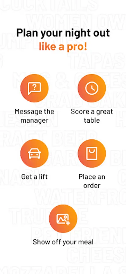 Select listing offer everything you need to plan your meals right from our app. Ask questions of the manager, book a reservation, order takeout and even book a ride to the restaurant without ever exiting Neon Feast.