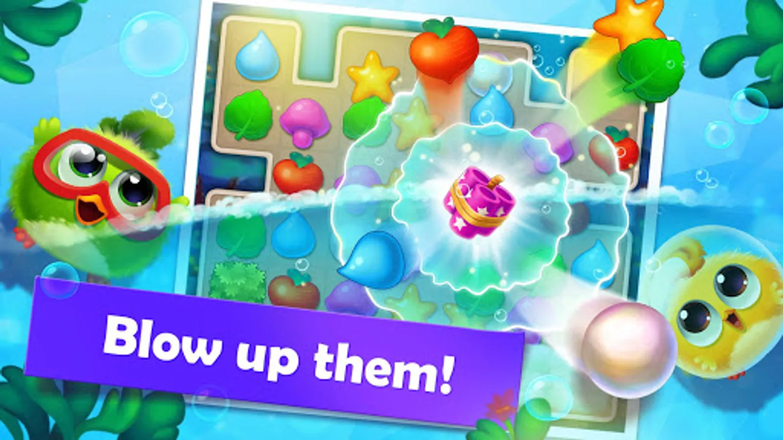 Journey with lovely chick family to adventure in the world. Swap and match 3 or more of identical colorful fruit to blast. Create as many amazing boosters as you can to clean up the plate. Show off your skills in Puzzle Wings!
