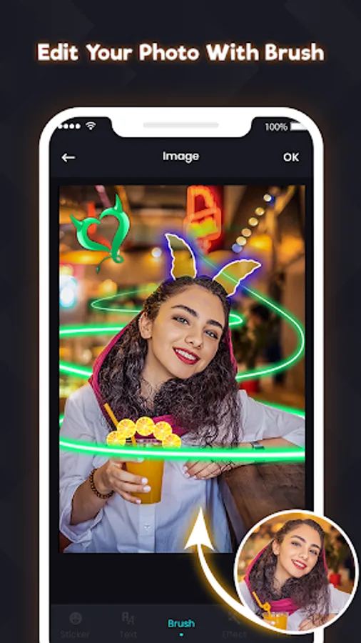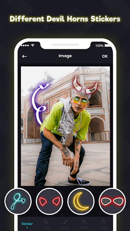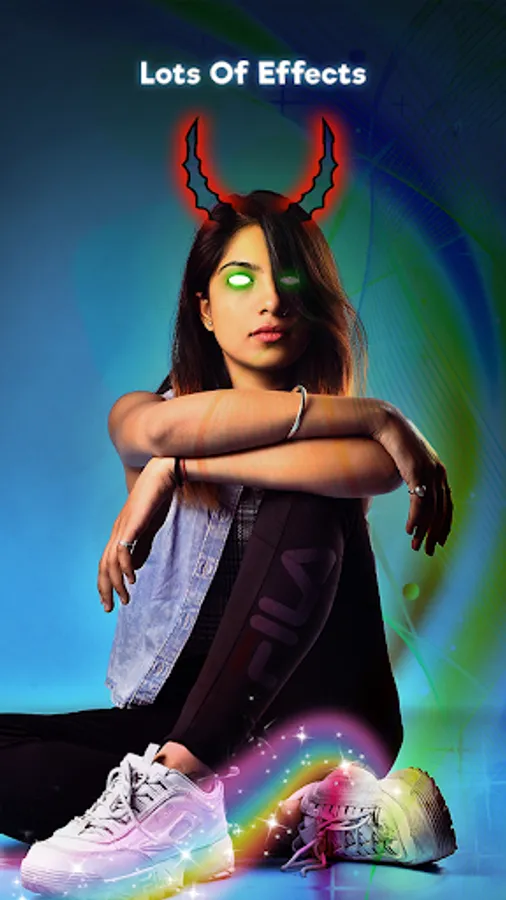 👿 Neon Horns Devil Photo Editor gives you a huge collection of horns sticker, cheeks, neon crowns, neon wings, heart crowns, rainbow, frames, emoji and many other stickers. You can easily create Neon Halloween Crown Makeup.