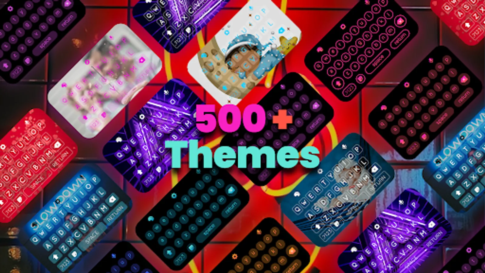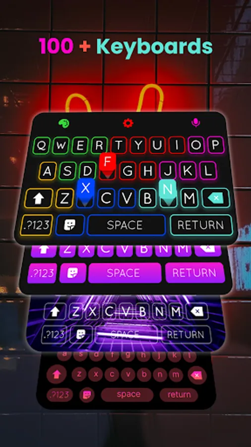 Keyboard Themes with Neon LED Style: Enjoy a collection of vibrant neon-led keyboard themes in a variety of colors.