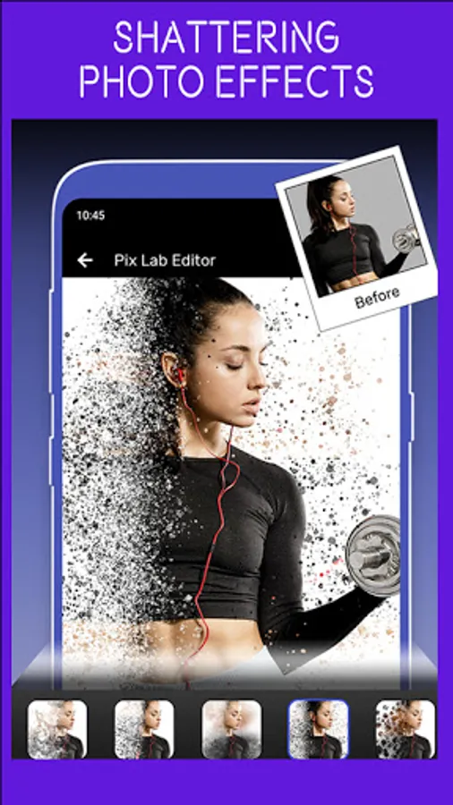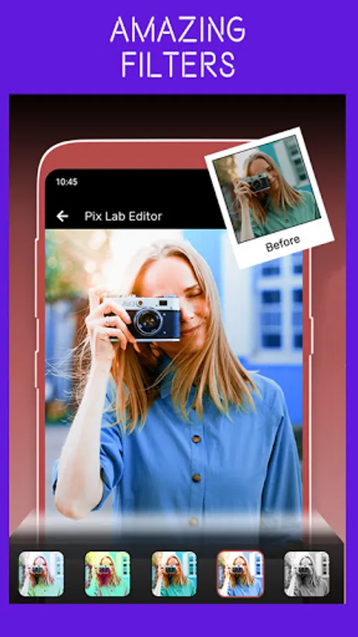Using filters, you can get effects like: overexposed film, hologram, glitch and 3D effect.