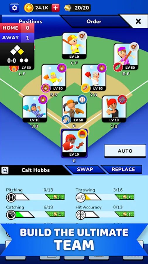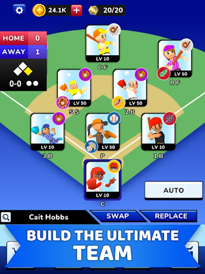 You are the manager, the coach, the owner, the boss! Organise your team and choose who plays in which position. Set your batting order and get your heavy hitters into the game! Set up your team and idle away as they bring in the wins and the cash!