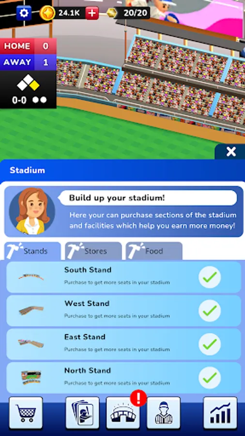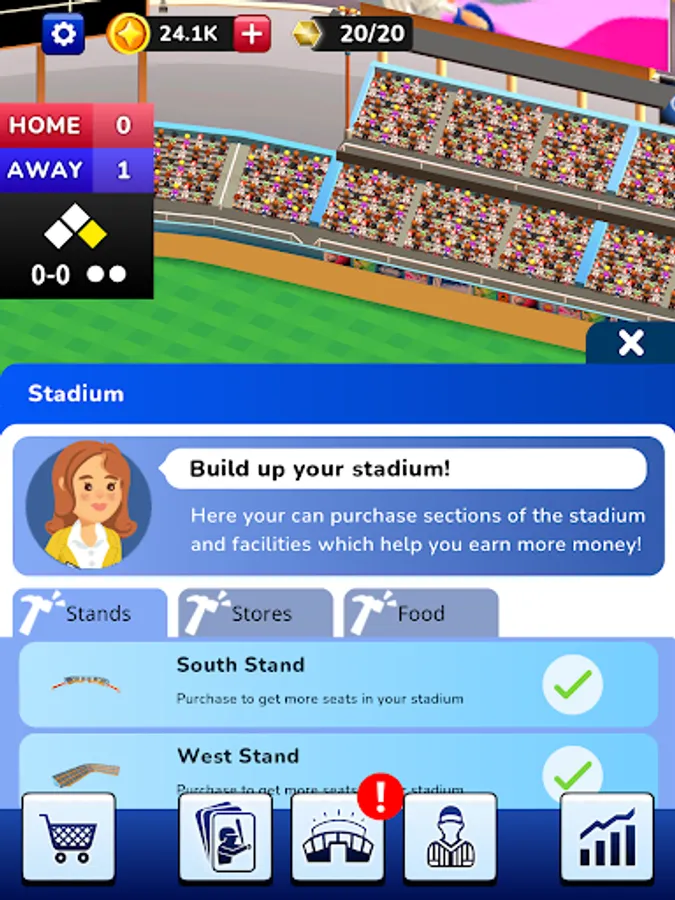 Earn money and become an idle tycoon billionaire! Invest in your stadium facilities and increase capacity for your loyal fans to put on a sporting spectacle!