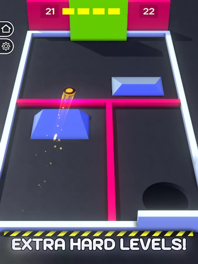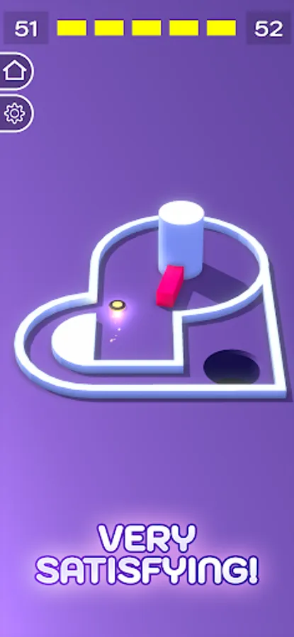 Sometimes it’s about getting the right angle or the right timing, but also releasing your Buca puck at the right pace. Avoid the pink walls as they will kill you, but you have three chances per level to get the ball or puck in the hole.