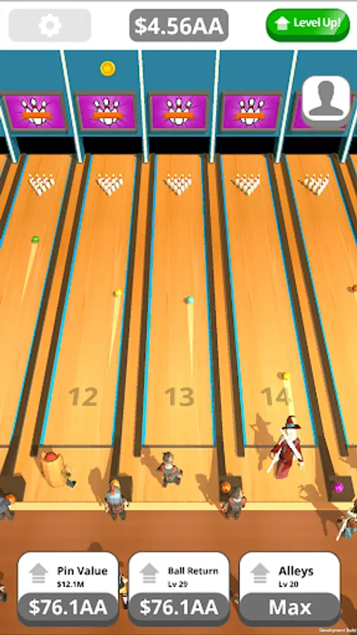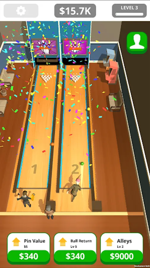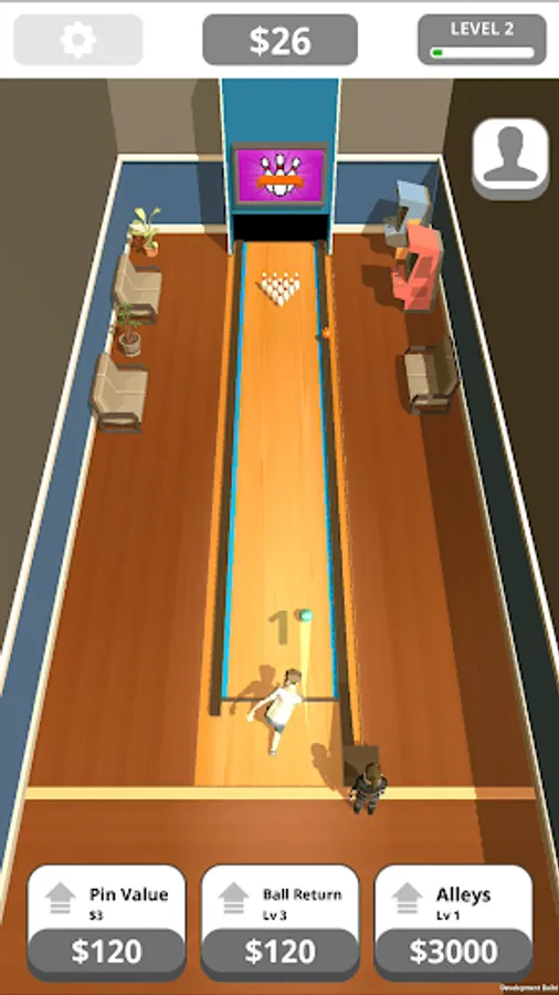 Earn money with every pin hit and use it to upgrade your bowling alley. Before you know it you'll have queues around the block to play in your perfectly polished lanes.