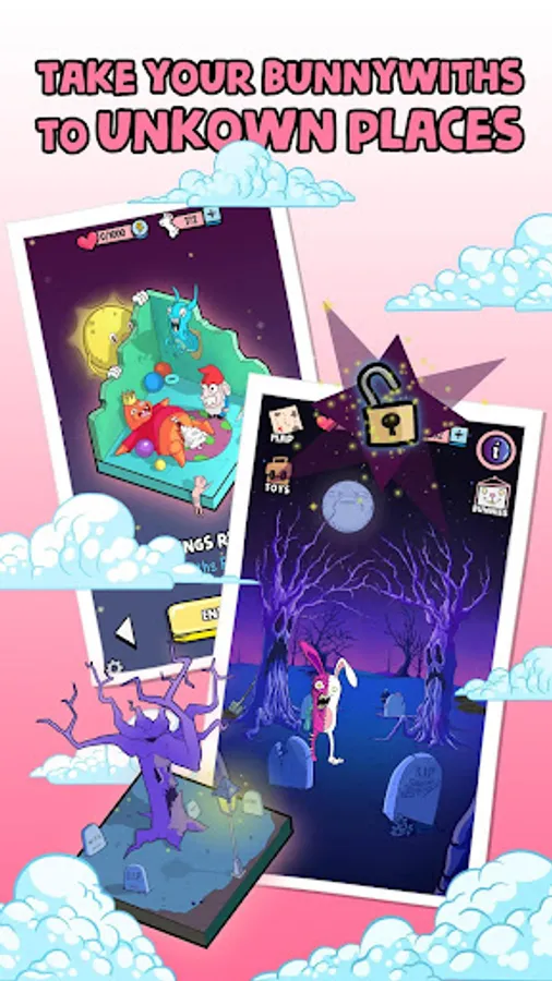 Discover and play with endless amounts of terror and fun. Share with your friends and build your Bunnywith collection!