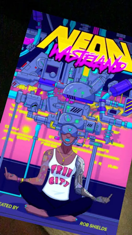 Use your smart phone to unlock the secret animations hidden within each page of the Neon Wasteland comic book. Be sure to sign up for the newsletter via the website to receive updates on the Neon Wasteland Comic Book series.