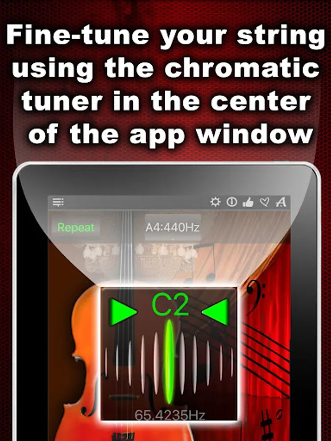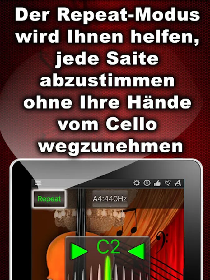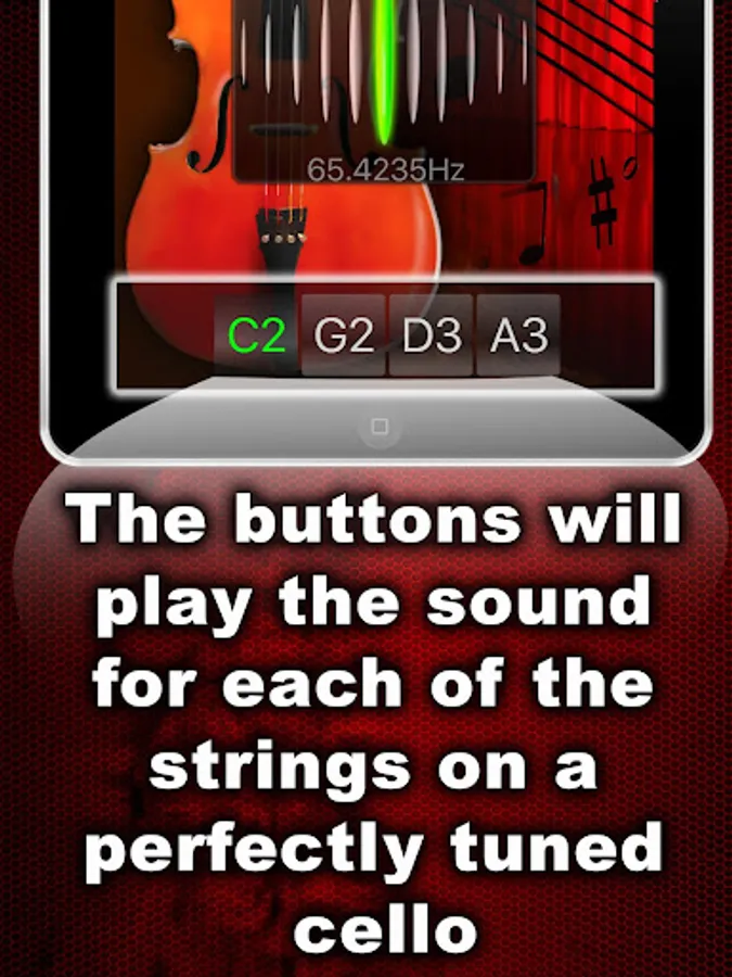 Tune your Cello fast & precisely! Simple and powerful, this cello tuner is both in one! You can listen the sound of each tuning string as well check & fine-tune the strings with the help of the chromatic tuner, placed in the middle of the app window!