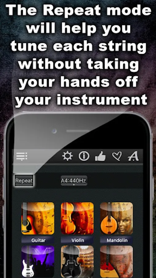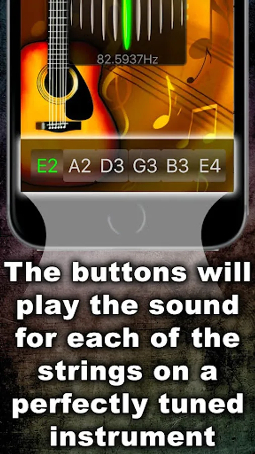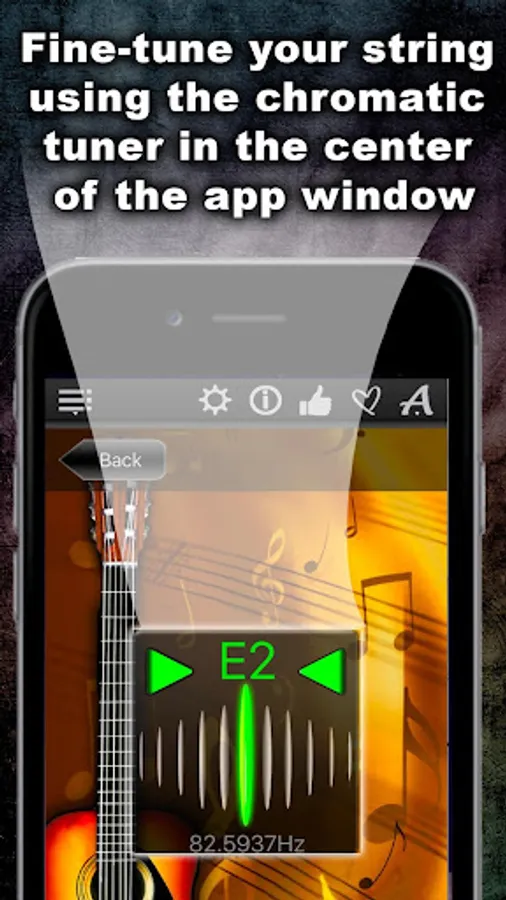 This app offers the possibility to listen the sound of each tuning string and check & fine-tune the strings with the help of the chromatic tuner, placed in the middle of the app window!