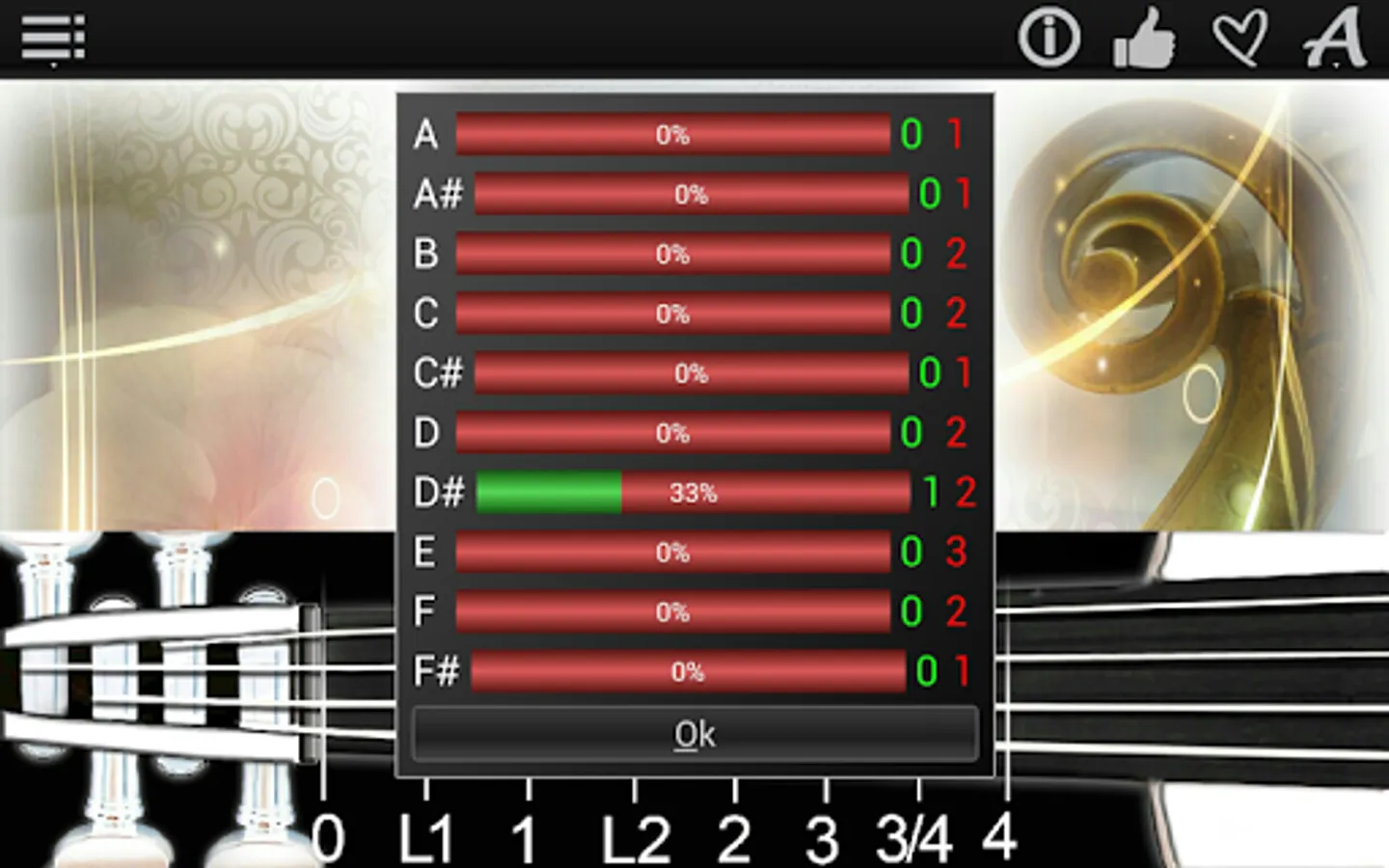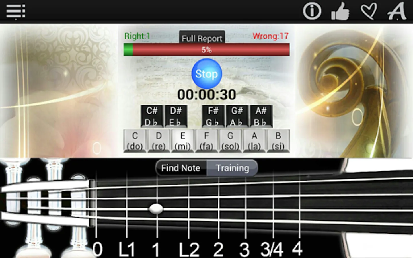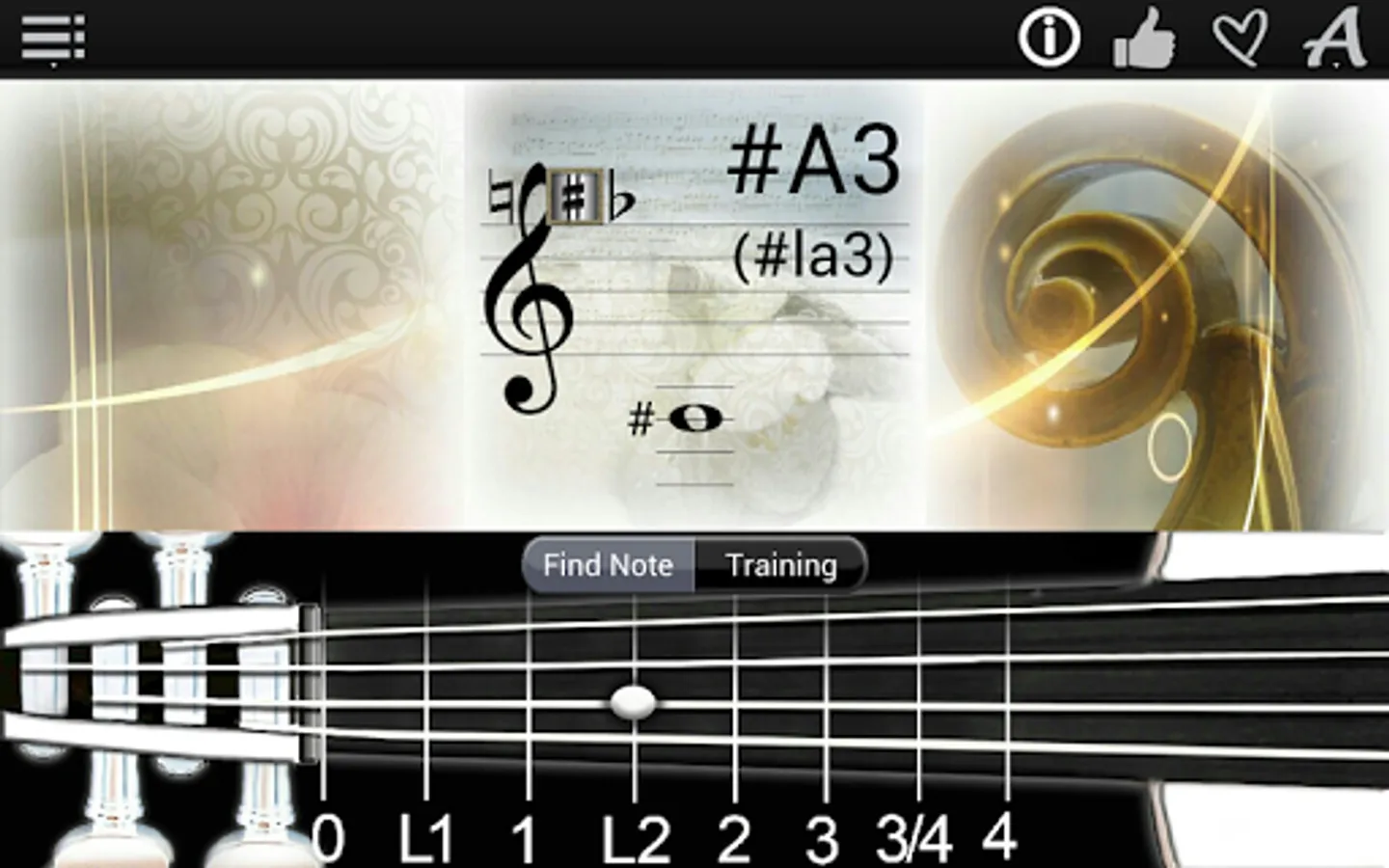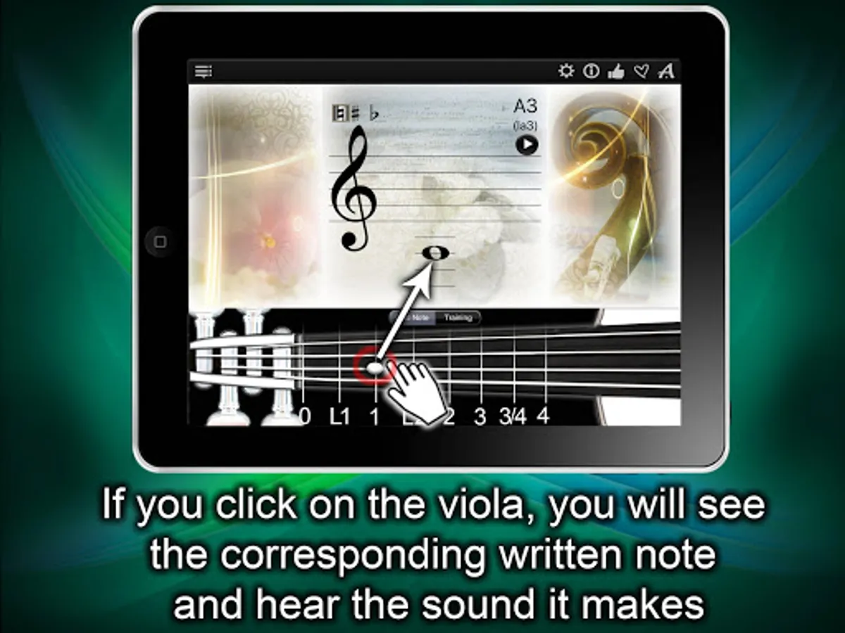 6. The possibility to tune your Viola, using the string sounds on the note explorer page;