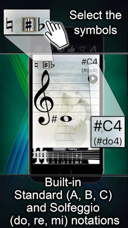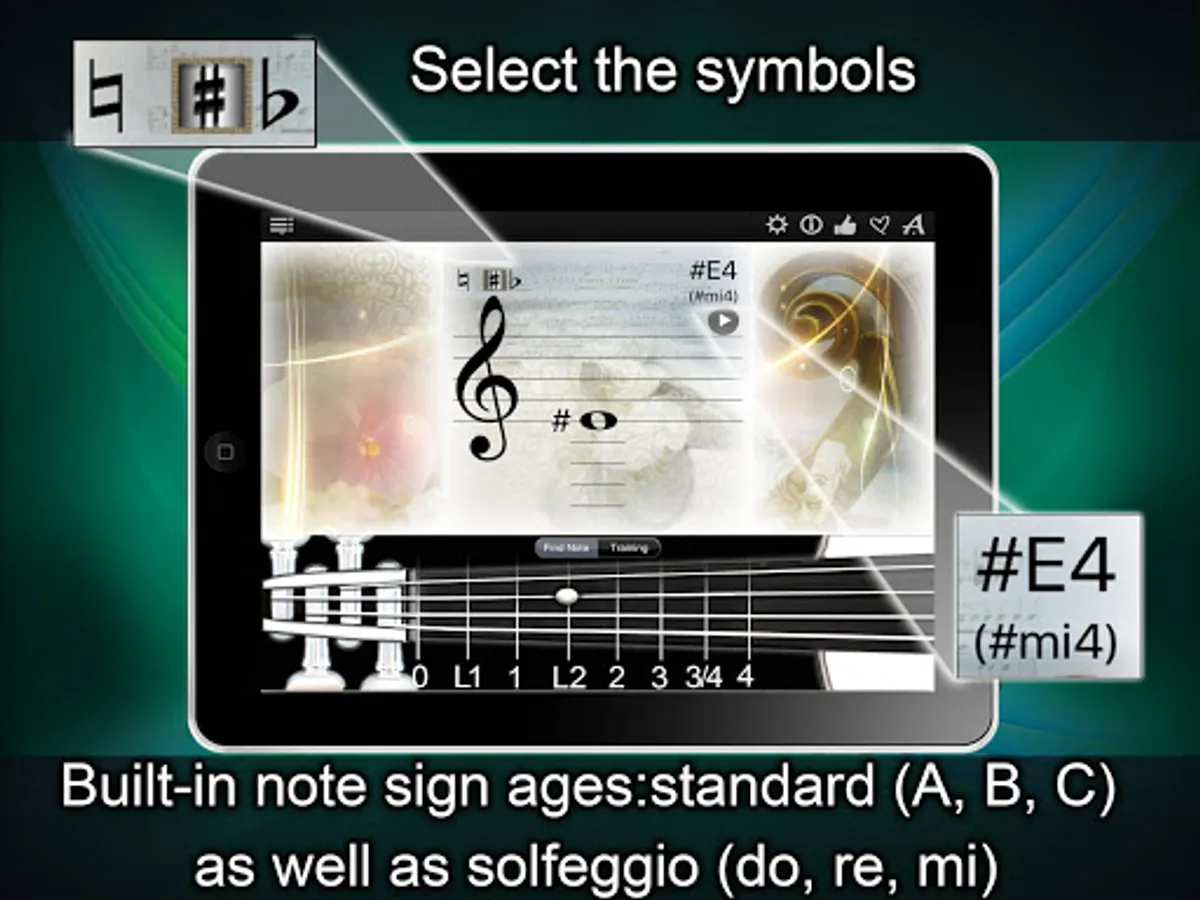 3. Built-in note sign ages: standard (A, B, C) as well as solfeggio (do, re, mi).