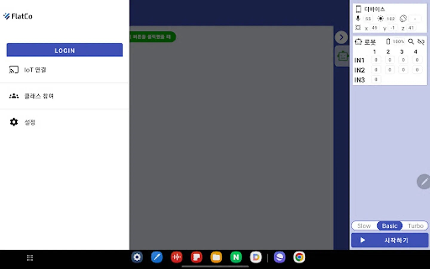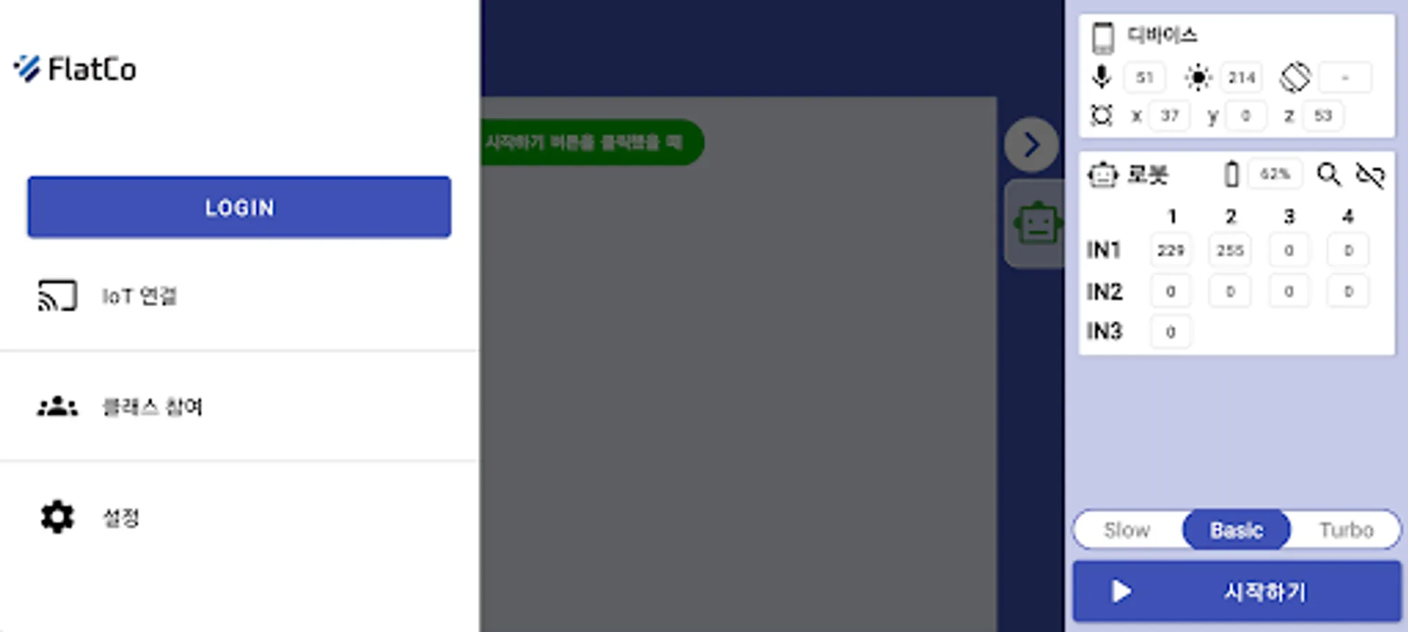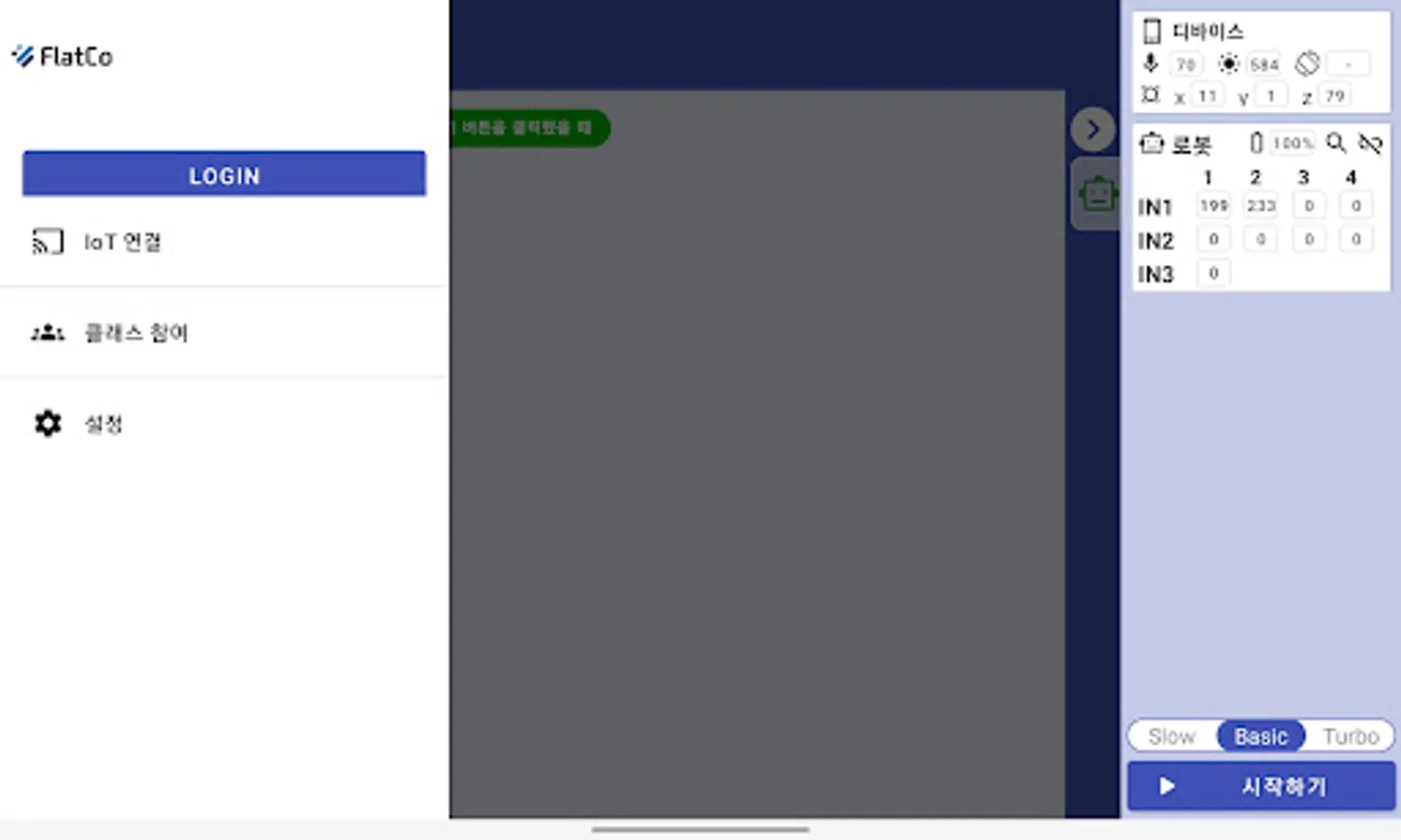 After opening a class on a web browser (flatco.co.kr), anyone can share codes, communicate, create programs, and control robots by participating in the class with a PC, laptop, tablet, or smart device. Coding education using AI, IoT, and Robot is possible even in poor communication and equipment environments.