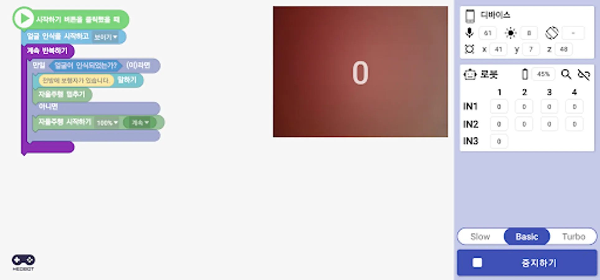 After coding on a smartphone, attaching the smartphone to an autonomous vehicle robot can be used as an AI camera that recognizes pedestrians in front.