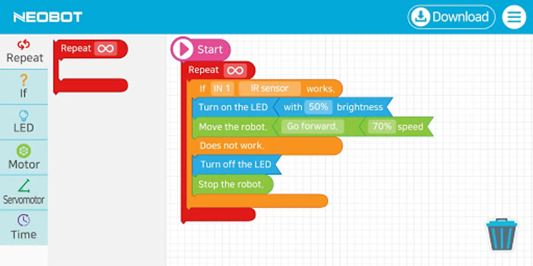 This is a coding APP for controlling the educational robot 'Neobot' made by