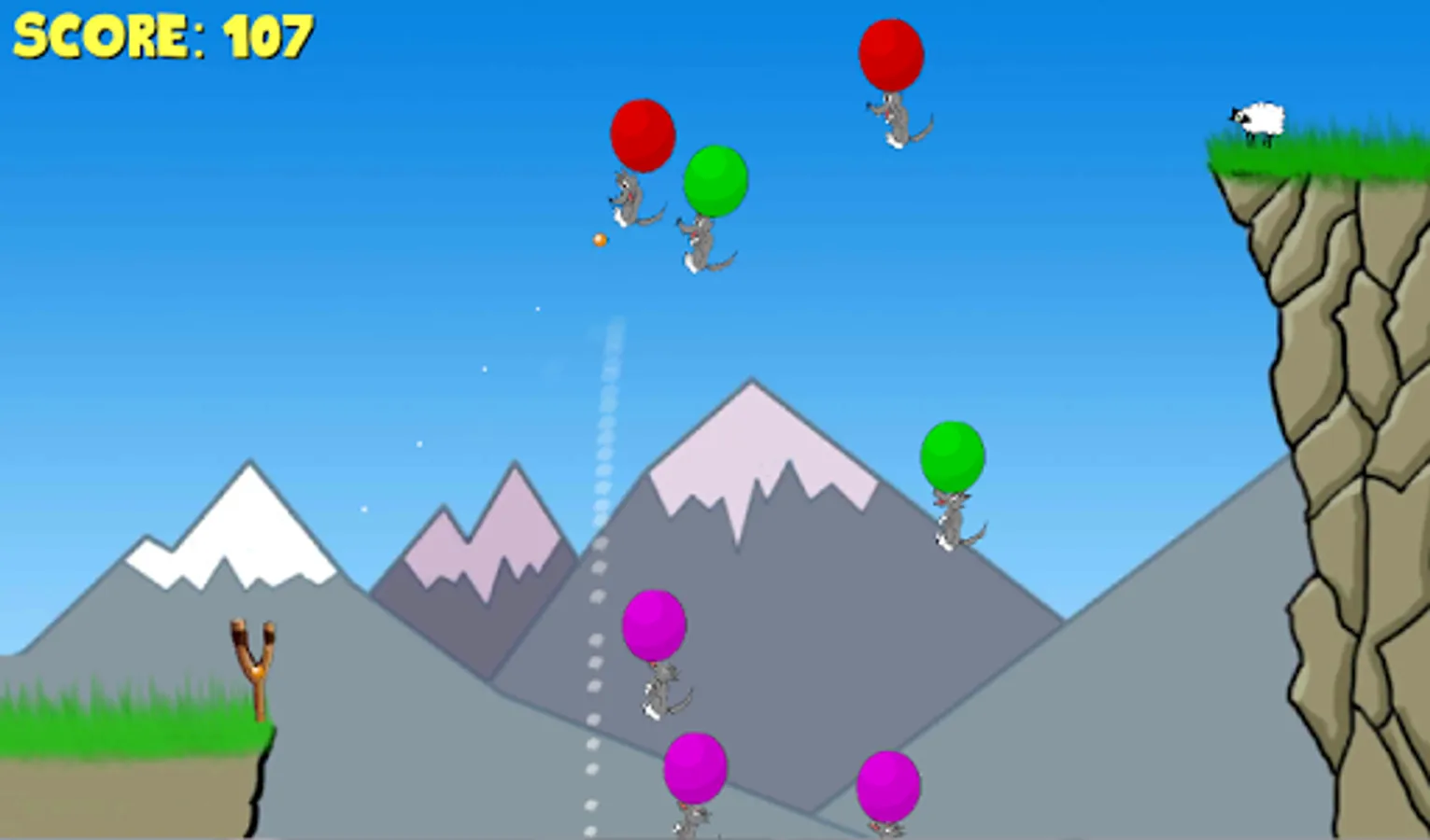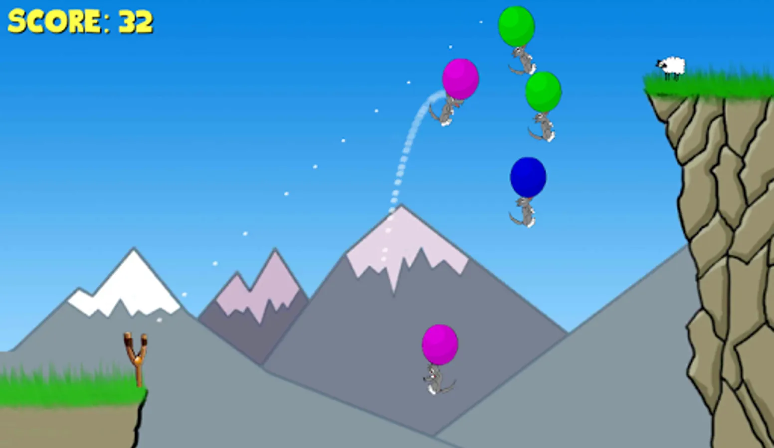 Play strategically - either snipe each wolf quickly to keep your sheep safer for longer, or wait for a bunch of wolves on screen for huge bonus earnings as your shot bounces from balloon to balloon, scoring more each time!