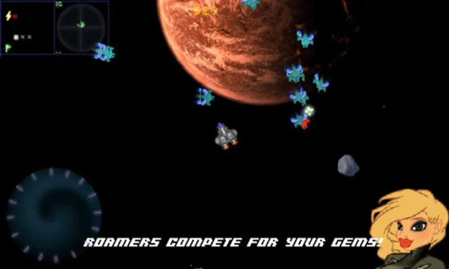 To progess each wave, your task is to collect the gems produced when blasting the asteroids (think: Sinistar). Don't worry, the asteroids won't hurt you, but you'll be faced with a different challenge - your enemy ('Roamers') just love to grab those Gems too - so make sure you reach them first - and beware! Shoot them quickly, or they'll be transformed into a much more dangerous foe (think: Defender). Lose all your gems and you'll have to fight the remained of the waves from 'Witchspace' with nothing but chaotic Mutons attacking from all sides.
