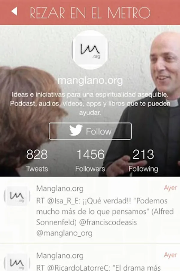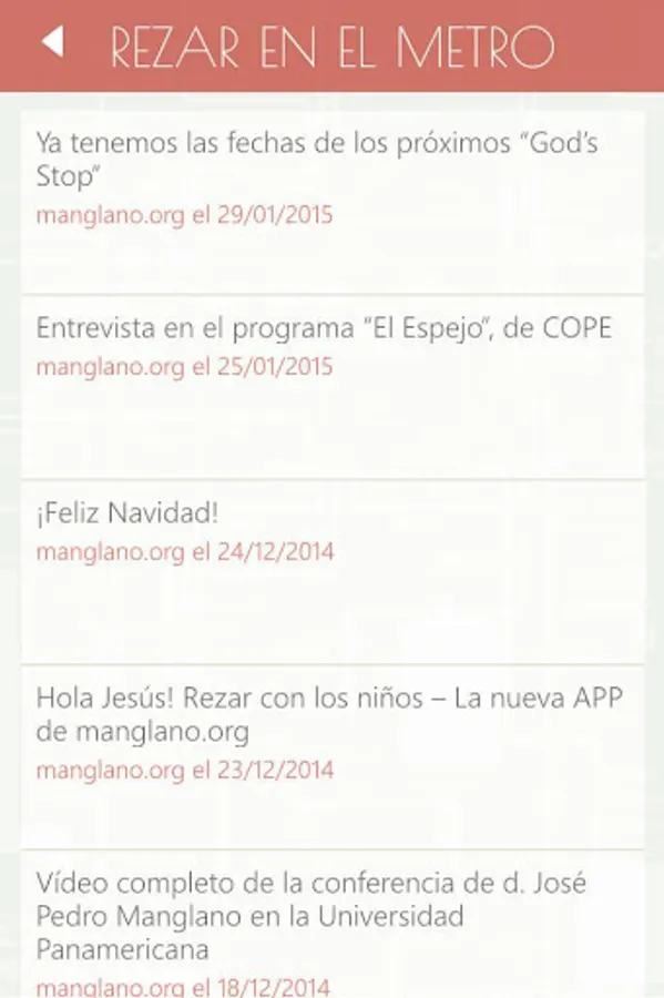 The app updates audios continuously. Some authors are Pope Francis, Mario Iceta, Pablo Domínguez, Jesús Higueras, Fulgencio Espa, José Pedro Manglano, Jesús Higueras, Cantalamessa ...