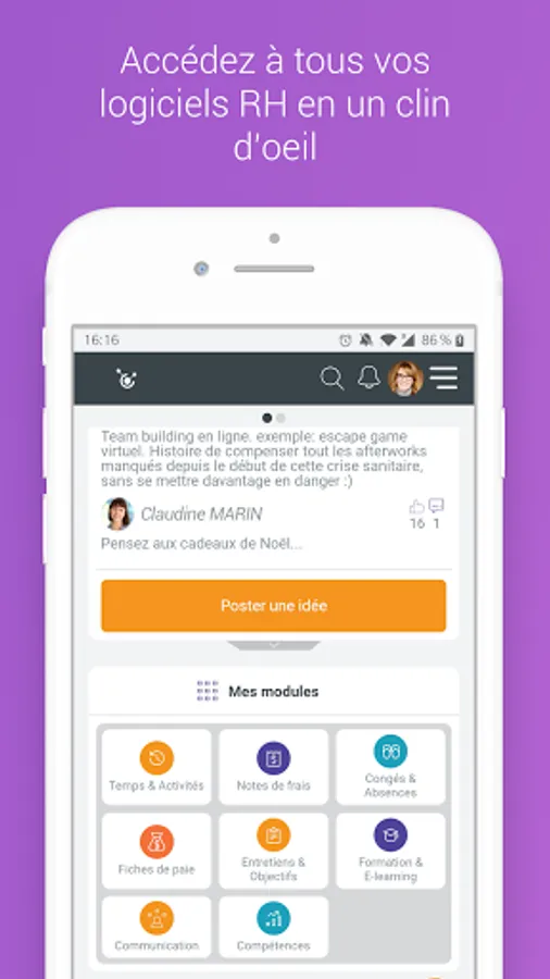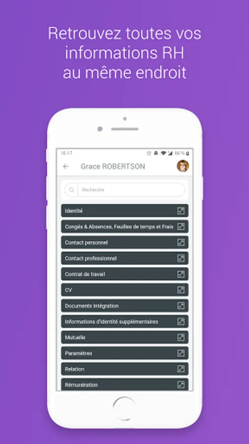 Thanks to our secure and unified mobile access, receive notifications, access your profile, consult admin documents, and manage leave, expenses and all HR requests from one single app.
