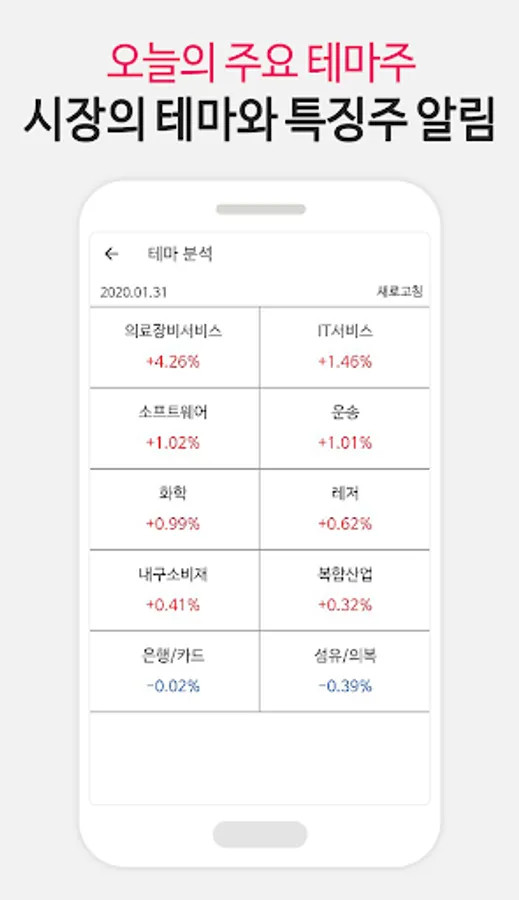 You can see information about today's recommended stocks, popular stocks, and themes.