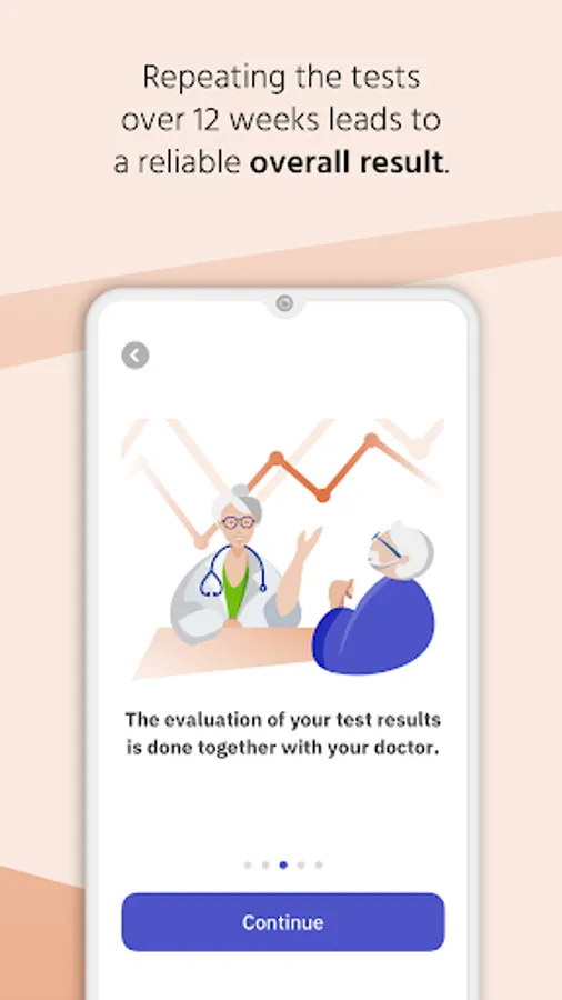 By conducting the digital tests in the app you can actively contribute to your care and support your physician with valuable test results.