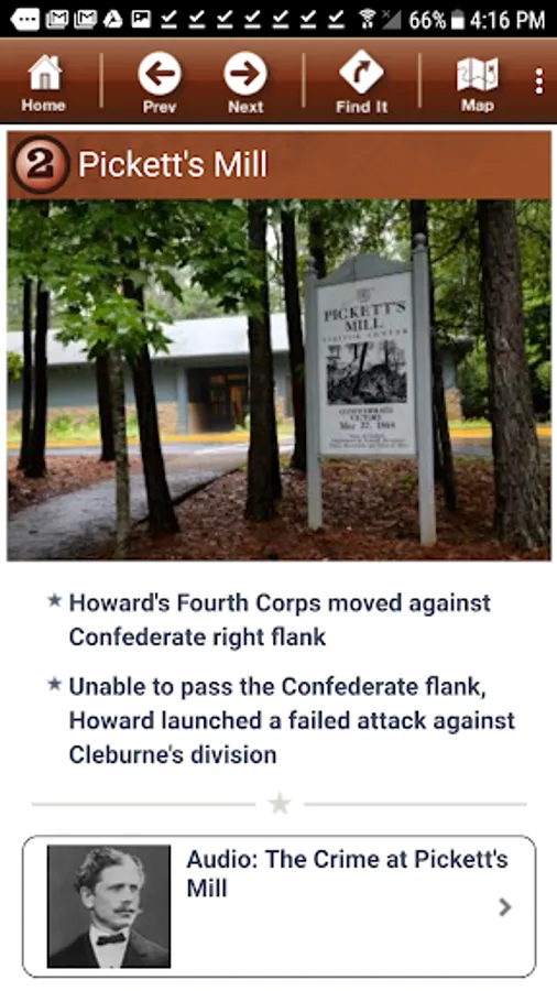 Click on our “virtual signs” to access a wealth of information related to the very location where you are standing. Onboard historian videos, audio accounts from soldiers and civilians, photos, facts, and more are just a click away. Never has so much information been made available in such a portable device!