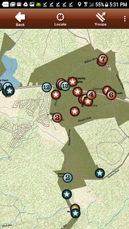 The Chancellorsville Battle App® is the perfect Civil War touring partner for your exploration of the Chancellorsville battlefield. Our GPS-enabled touring application will guide you to all the historic spots on this Civil War battlefield – from the initial battles near the Alsop House to Jackson's famous flank attack and the bloody climax around the Chancellor house.