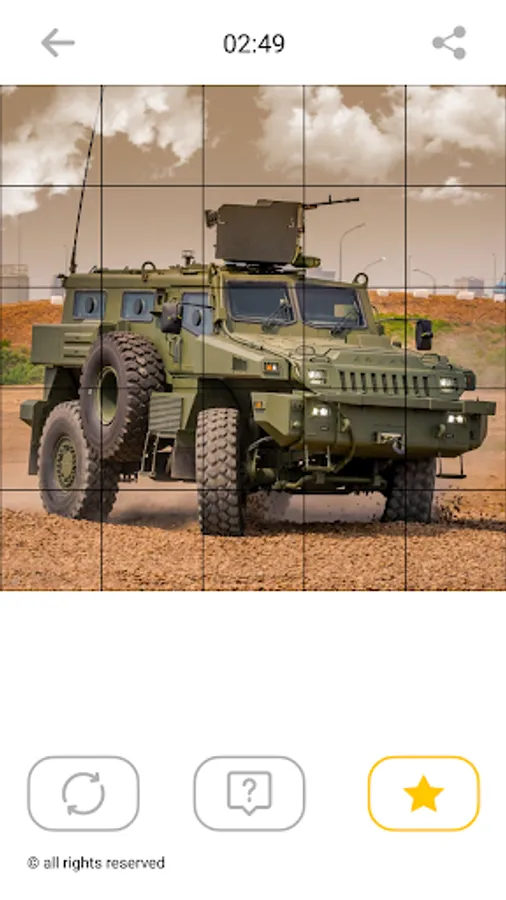 Do you like to put jigsaw puzzles with different combat and military vehicles? If yes, then you may like this smart educational puzzle game! We have put together a large collection of images of different combat vehicles that you can collect in the form of a mosaic and puzzle.