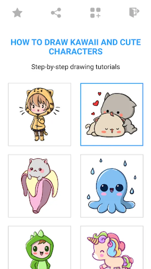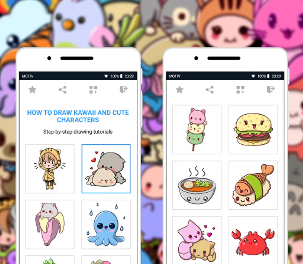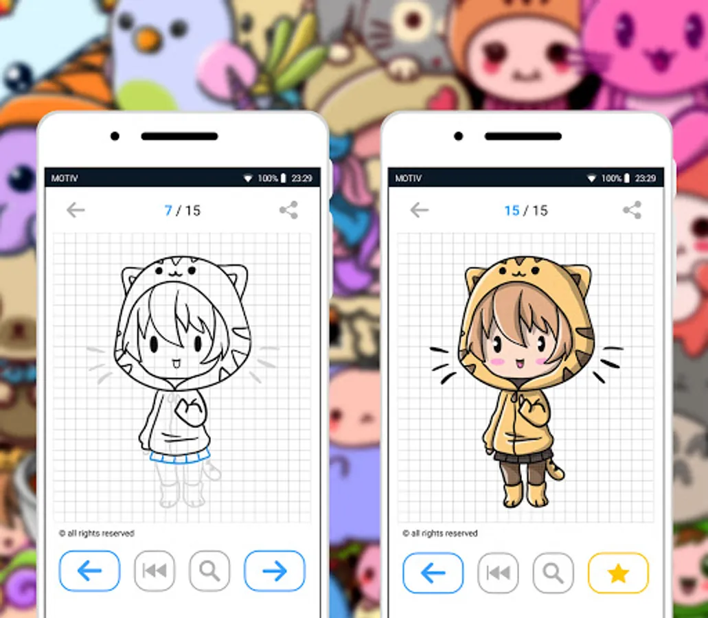 Would you like to learn how to draw cute Kawaii characters? If so, then our new tutorial app with detailed step-by-step drawing tutorials might come in handy. In this application, we have posted a series of easy step-by-step tutorials that will show everyone how to painting and color cute Kawaii characters with ease.