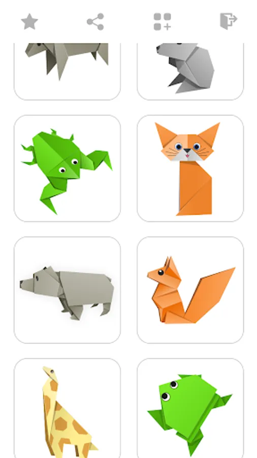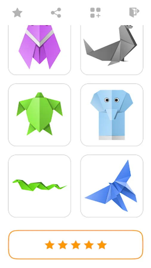 Want to learn how to make origami animals out of paper? If so, then you should love our tutorial app with step by step origami lessons. We have collected a collection of interesting instructions that will allow you to make crafts of different animals from paper, among which you will find rare and unique lessons, for example: origami elephant, origami seahorse, origami bear, and cat, panda, stingray, chipmunk, etc. We tried to create step-by-step diagrams so that they are understandable without words and comments. We want to further develop this application by adding new step-by-step tutorials.