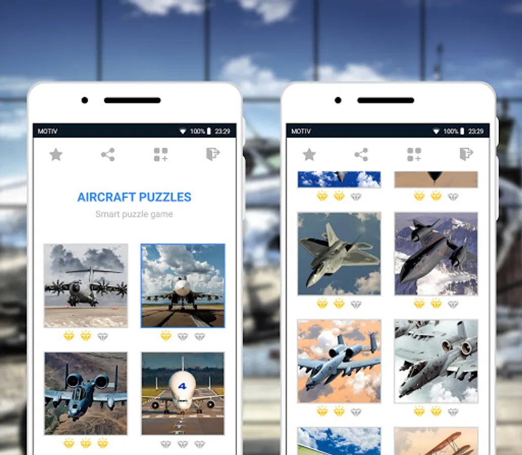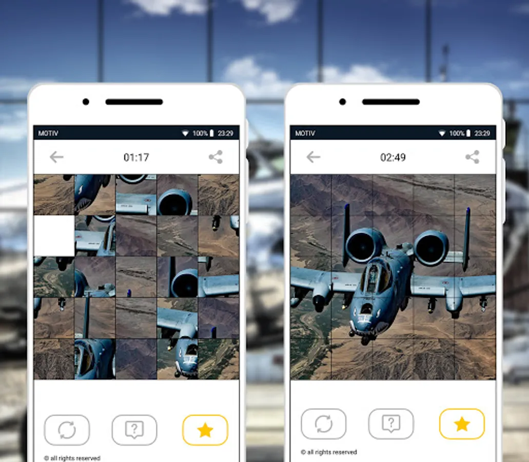 People love puzzles. Puzzles or, as they are also called, mosaics are a very useful and interesting hobby that develops a person. Puzzles help develop memory, imagination, strategic thinking, attention, and improve analytical skills. We have selected a collection of pictures with different types of planes to make it more pleasant for you to play: collect puzzles and explore different planes. Each picture in this application is divided into 25 segments that need to be put together by moving the desired segments to an empty space. This is very exciting and addictive because every time you can improve your performance. Our puzzle game is suitable for all age groups.