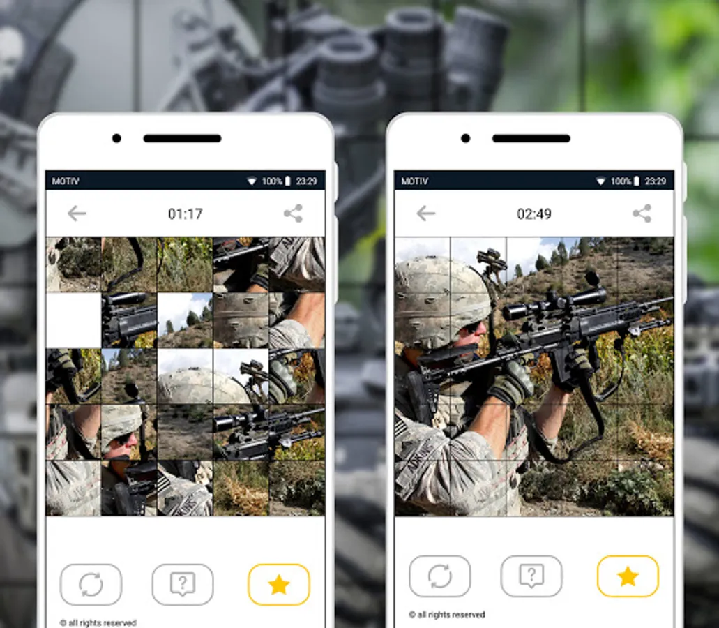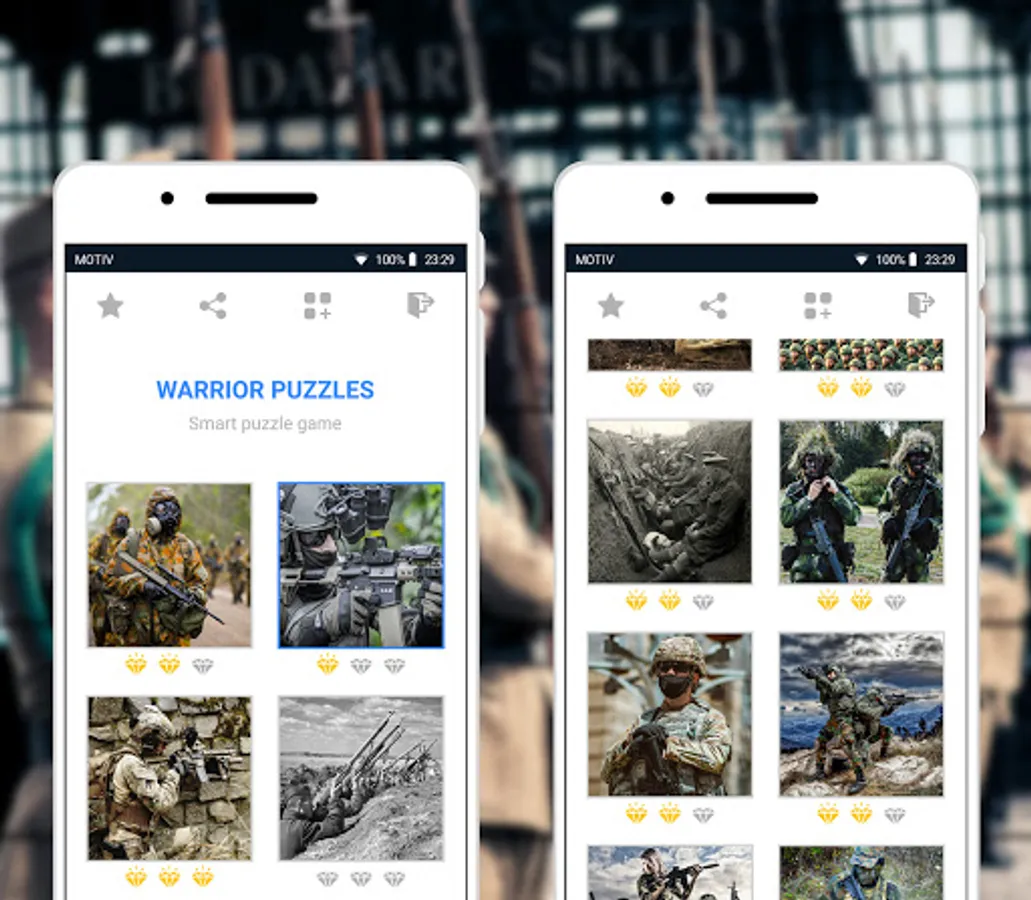 In this puzzle game, all segments of the puzzle with soldiers have an optimal square shape, which allows you to develop human skills much more efficiently. The game may seem daunting at first, but it isn't - you just need to get used to it!