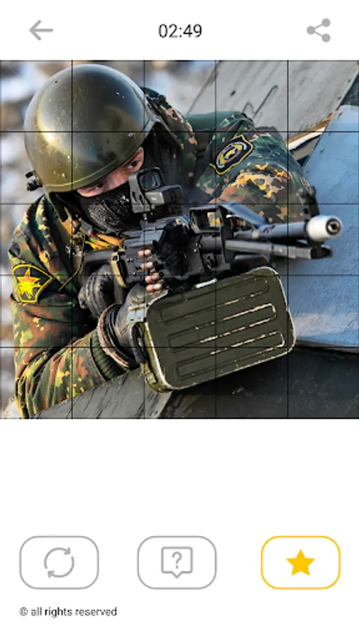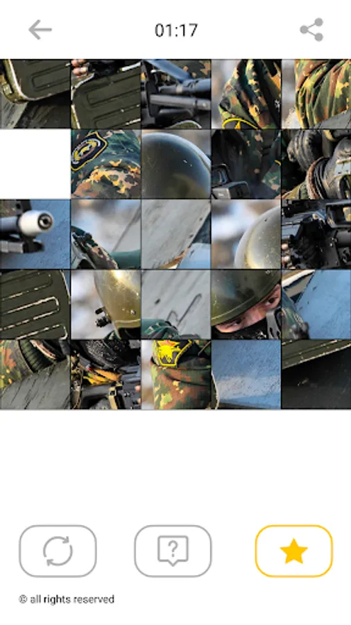 Each picture of the soldiers in this game is divided into 25 square segments that you need to put together by moving the selected segment to an empty space. It is very exciting! You can improve your performance by repeating tasks. Our movable puzzle game is suitable for all age groups.