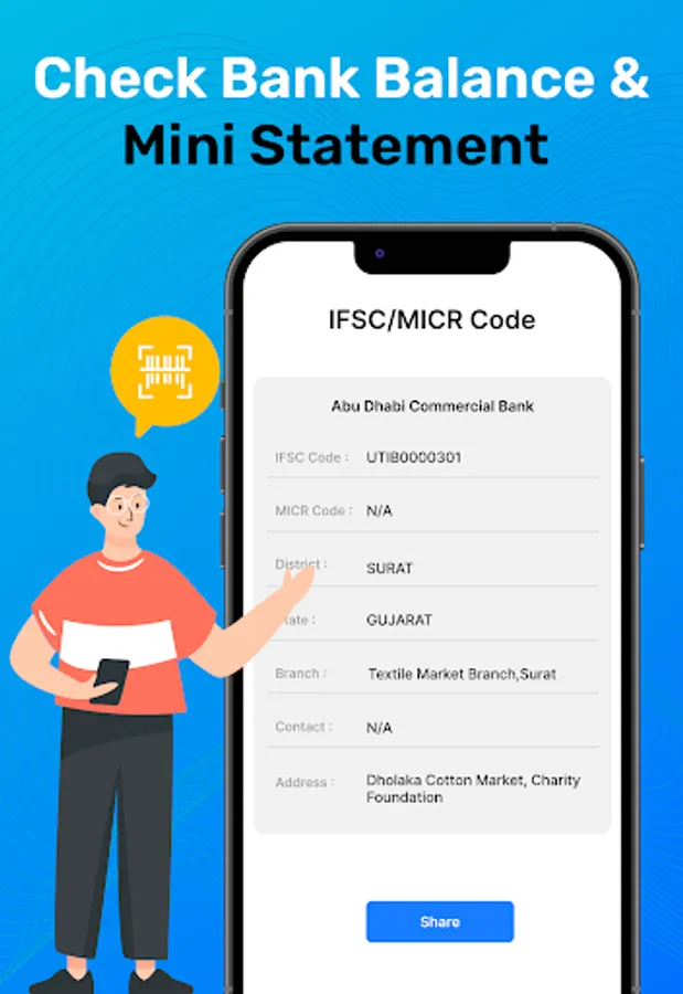 Find all bank IFSC code with the help of Bank balance check app. Moreover, you can search IFSC code by Pin-code number.