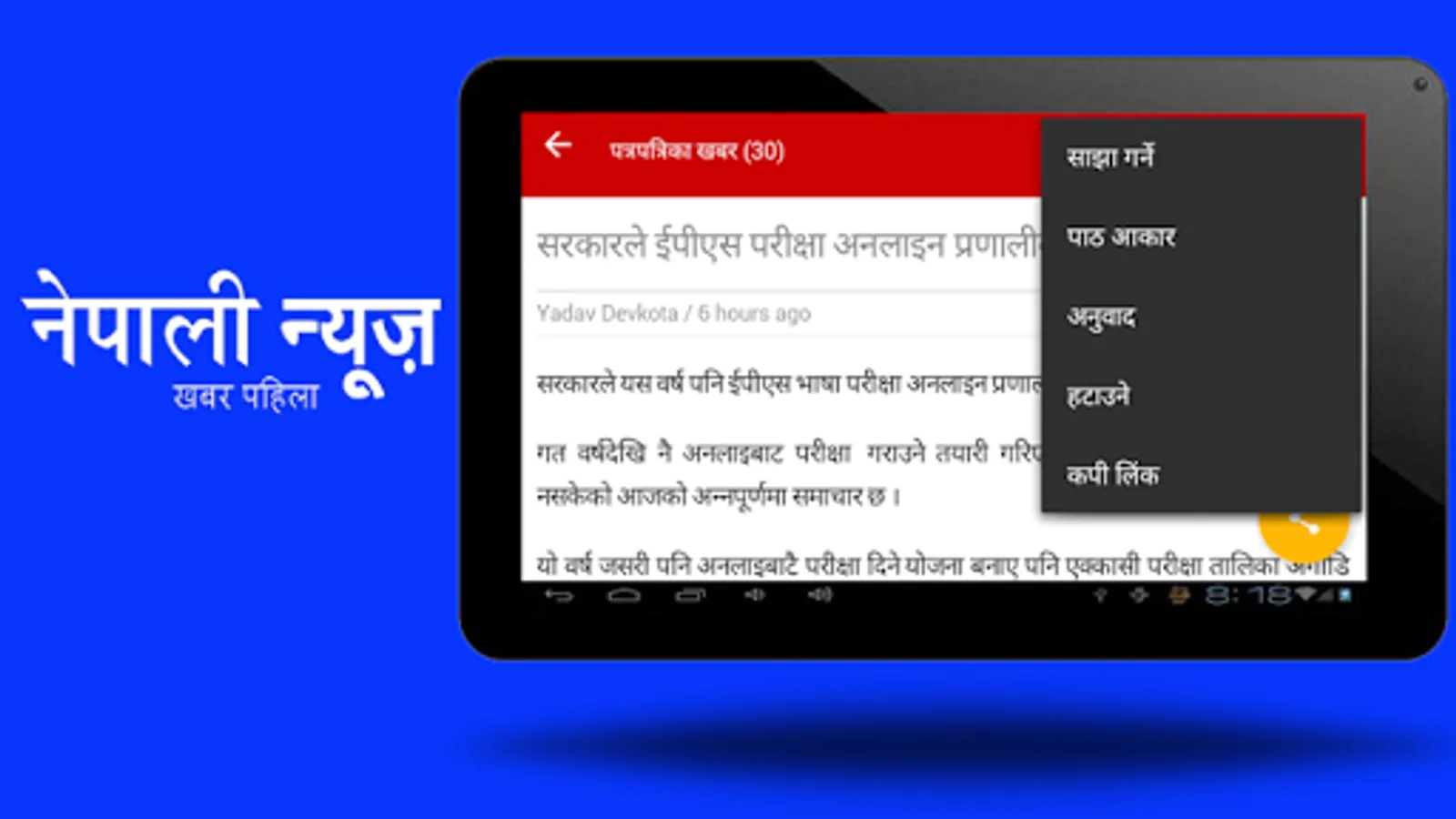 - Share news and healthy Nepali tips instantly with your friends and family through social network or Bluetooth.