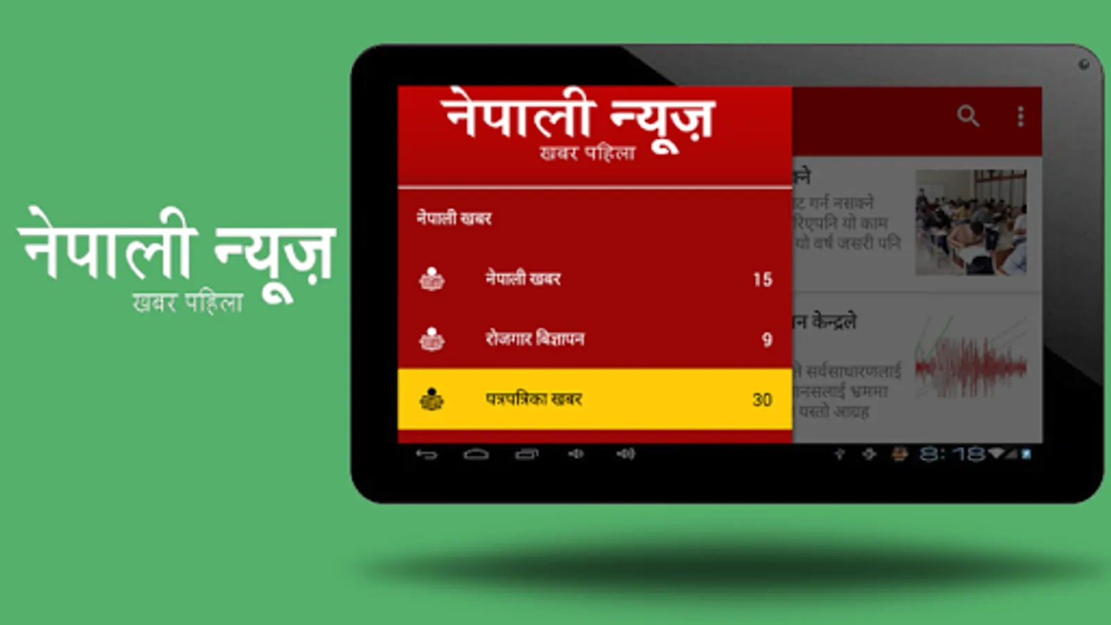 Access news in Nepali Language, videos and photos on your device with this official app. Not only that, you will also be aware of all the entertainment news, business news, science and technology and more in Nepali Language from the top Nepali newspapers, TV and online publishers. Also we have included Nepali Job vacancy and classified job advertisements for job seekers and Employees.