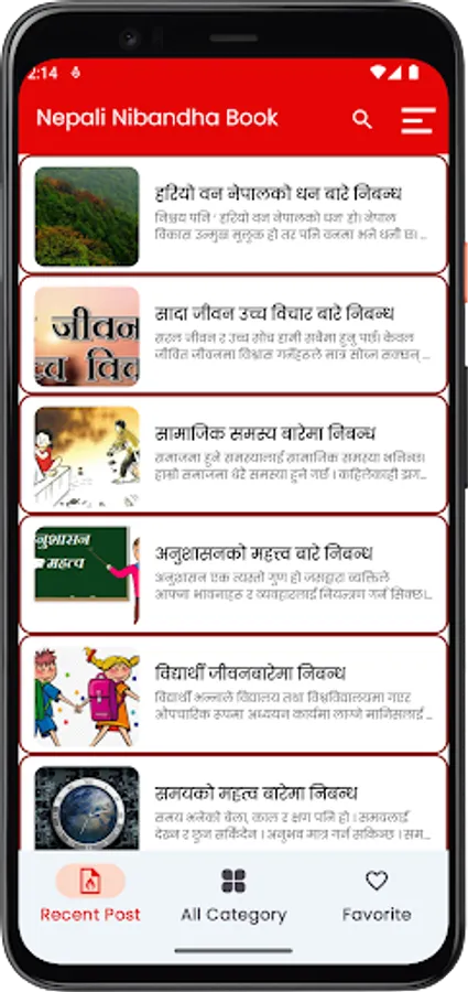 Nepali nibandha book is a free educational app. This app contains many Nepali essays. Many Nepali essays in this app, Which is very useful for students of class 5 to 10, 12 and other Nepali colleges and school student.