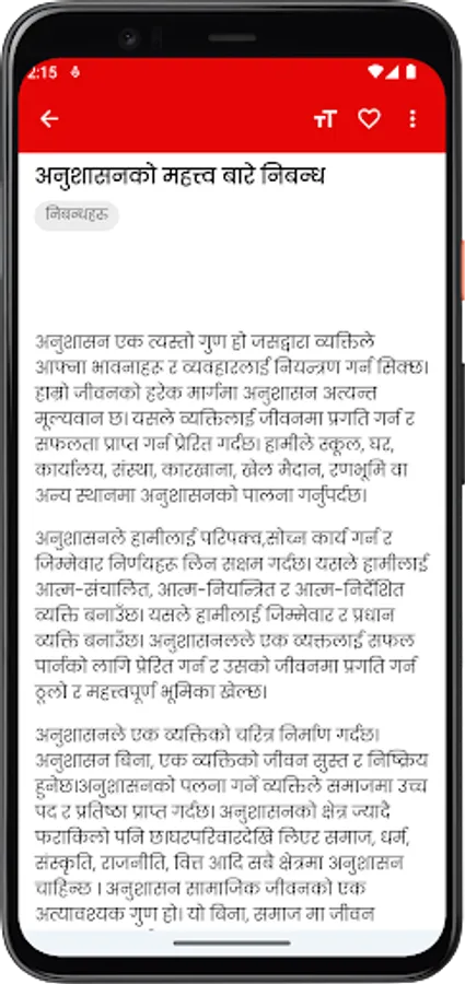 नेपाली निबन्ध एउटा निशुल्क शैक्षिक App हो, यो App धेरै नेपाली निबन्धहरू समाबेस गरिएको छ ।