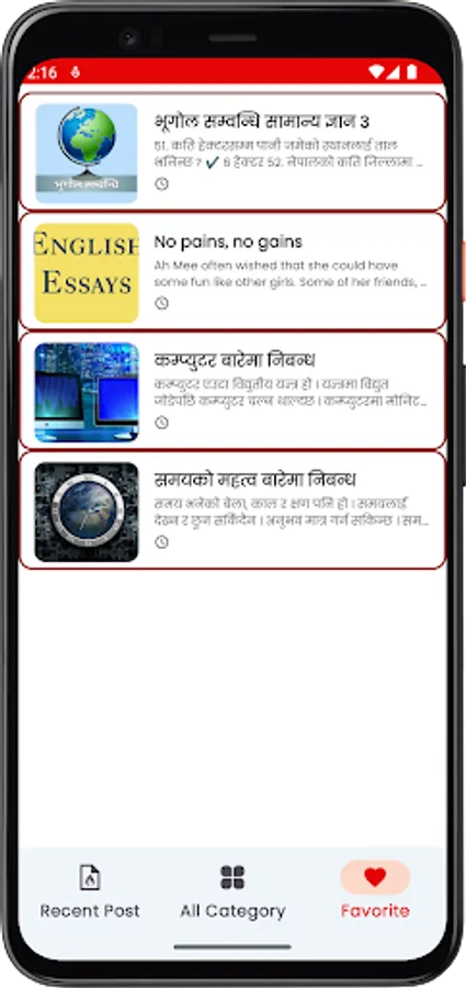 यो Appमा धेरै निबन्धहरु समाबेस छन्, जुन कक्षा ५ देखि १०/ १२ र अन्य नेपाली कलेजका विद्यार्थीहरूको लागि धेरै उपयोगी छ।