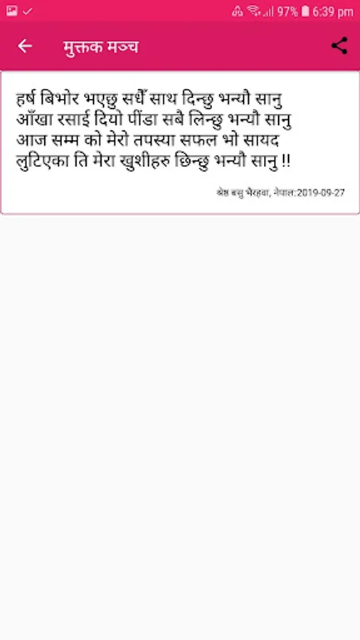 Nepali Muktak Collection App is Free for All and And support.In this Nepali Muktak App you can read,share and also send your Muktak to Admin.