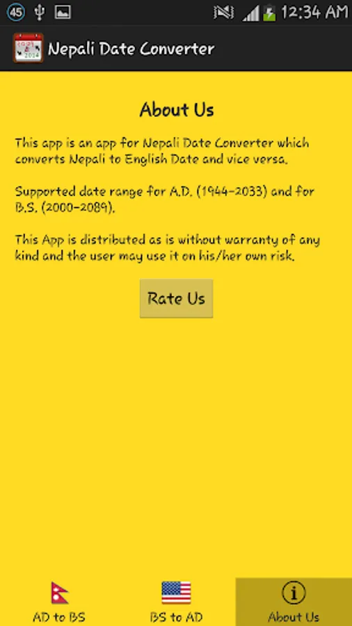Supported date range for A.D. (1944-2033) and for B.S. (2000-2089).