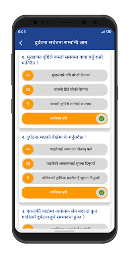 ✅ Knowledge of driving rules (सवारी ऐन नियमसम्बन्धी ज्ञान)
