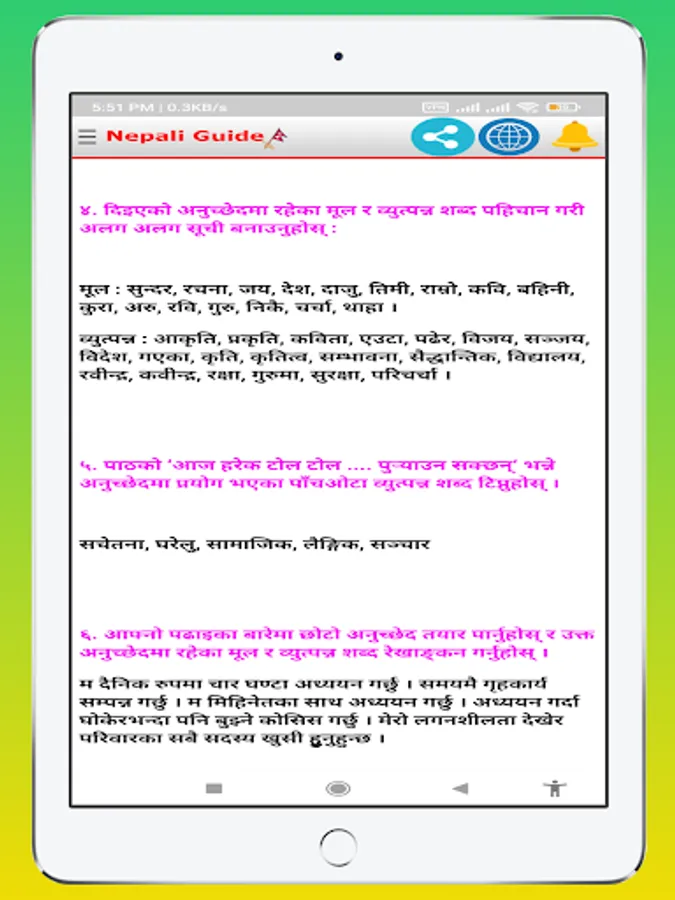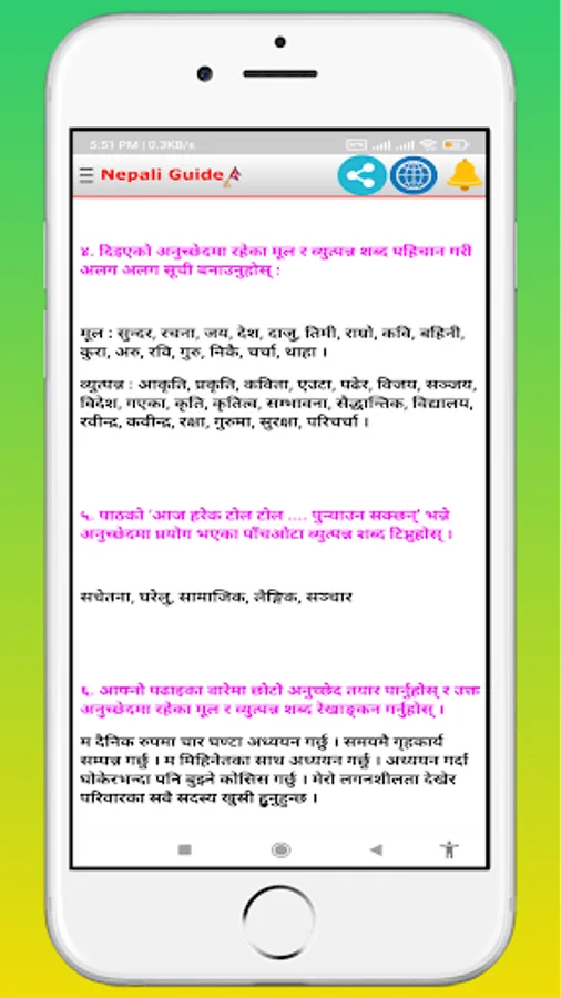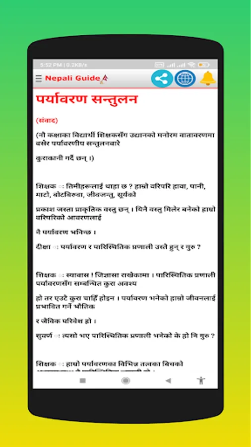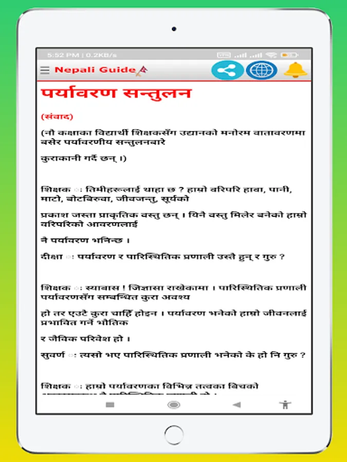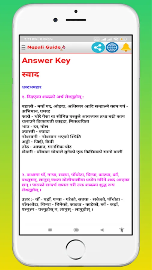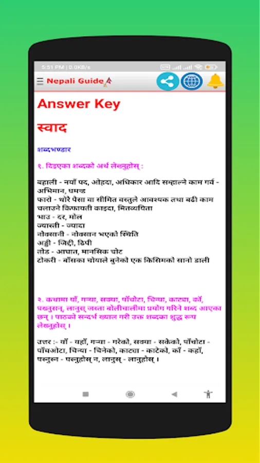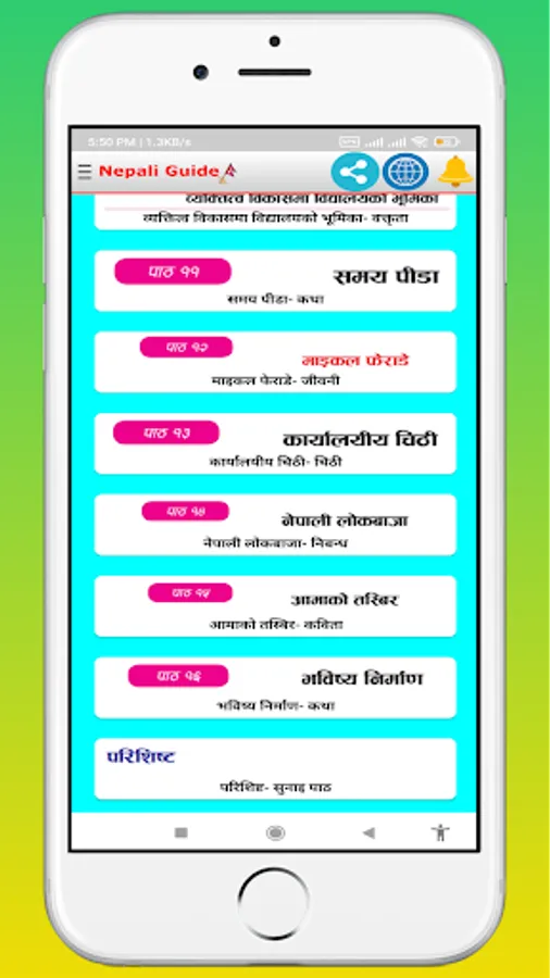Class 9 Nepali Guide Book is the best solution app for Nepali books. It is an easy-to-use educational application. This application contains a complete solution to all chapters of class 9 Nepali Subject. Now Prepare class 9 Nepali from mobile very easily because this application help to learn and read about the class nine guide books. Now enjoy Class 9 Nepali Guide on your android phone or in your tablet with a complete solution with a full book.