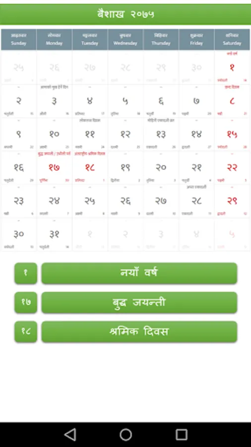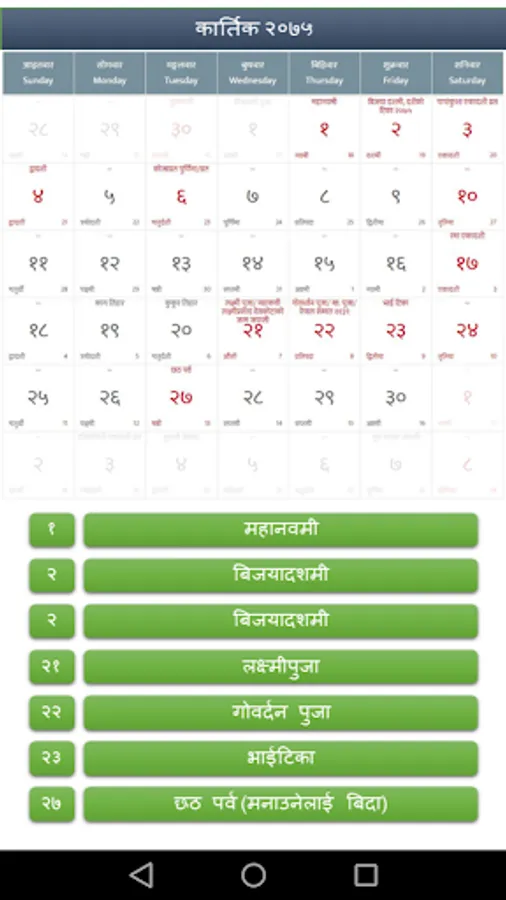 This Nepali Patro of 2075 has all monthly calendar along with public holidays.